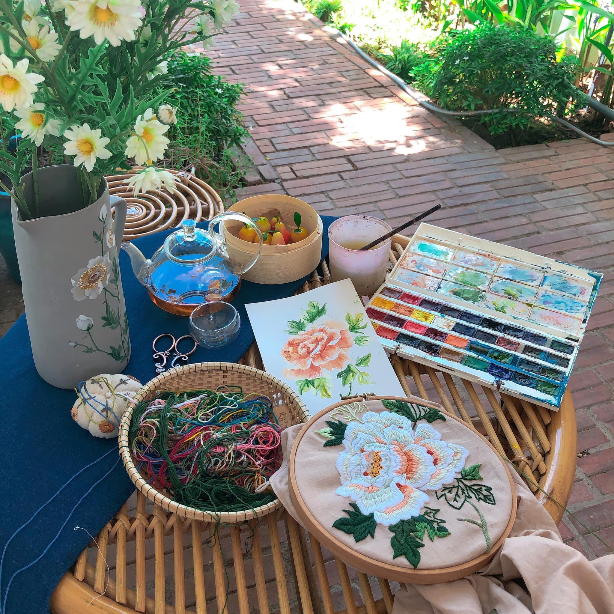 Song song với dạy vẽ Nhà còn đưa bạn trải nghiệm nhiều hoạt động liên quan thông qua các workshop dạy thêu, may, vẽ lên túi, vẽ màu sáp,nặn đất sét,làm các món thủ công xinh xắn như thiệp, lịch…