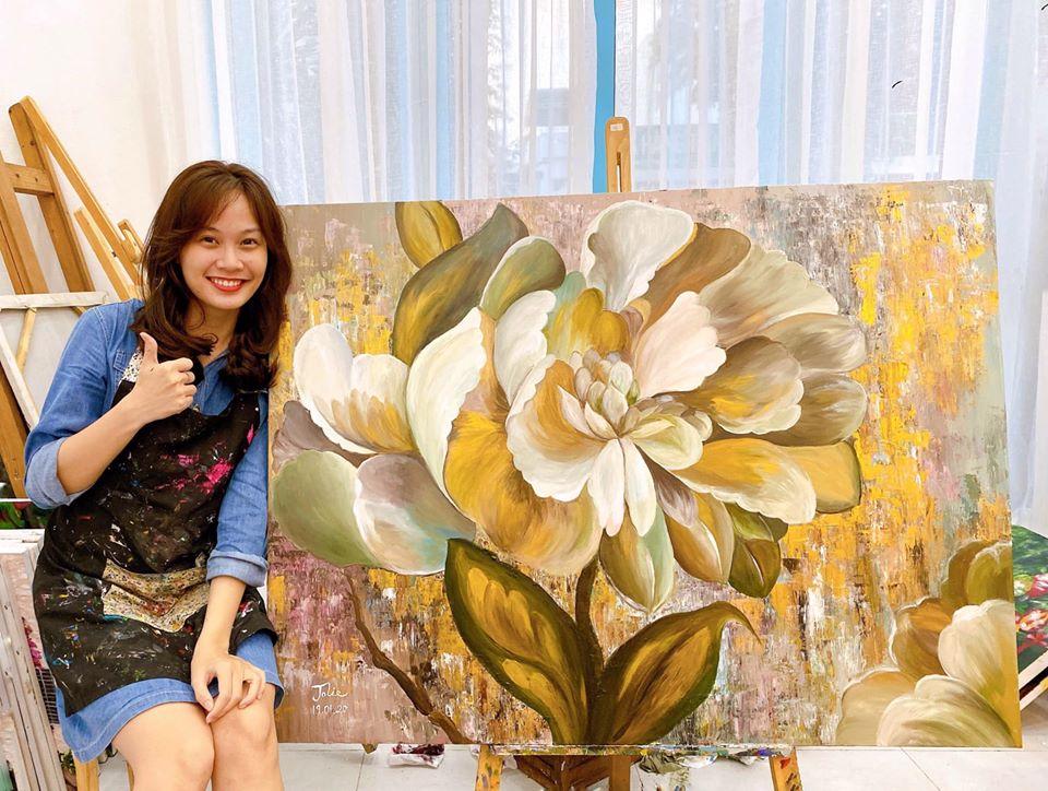 Bức tranh của bạn Trân vẽ trong vòng 8 tiếng để kịp treo đón Tết